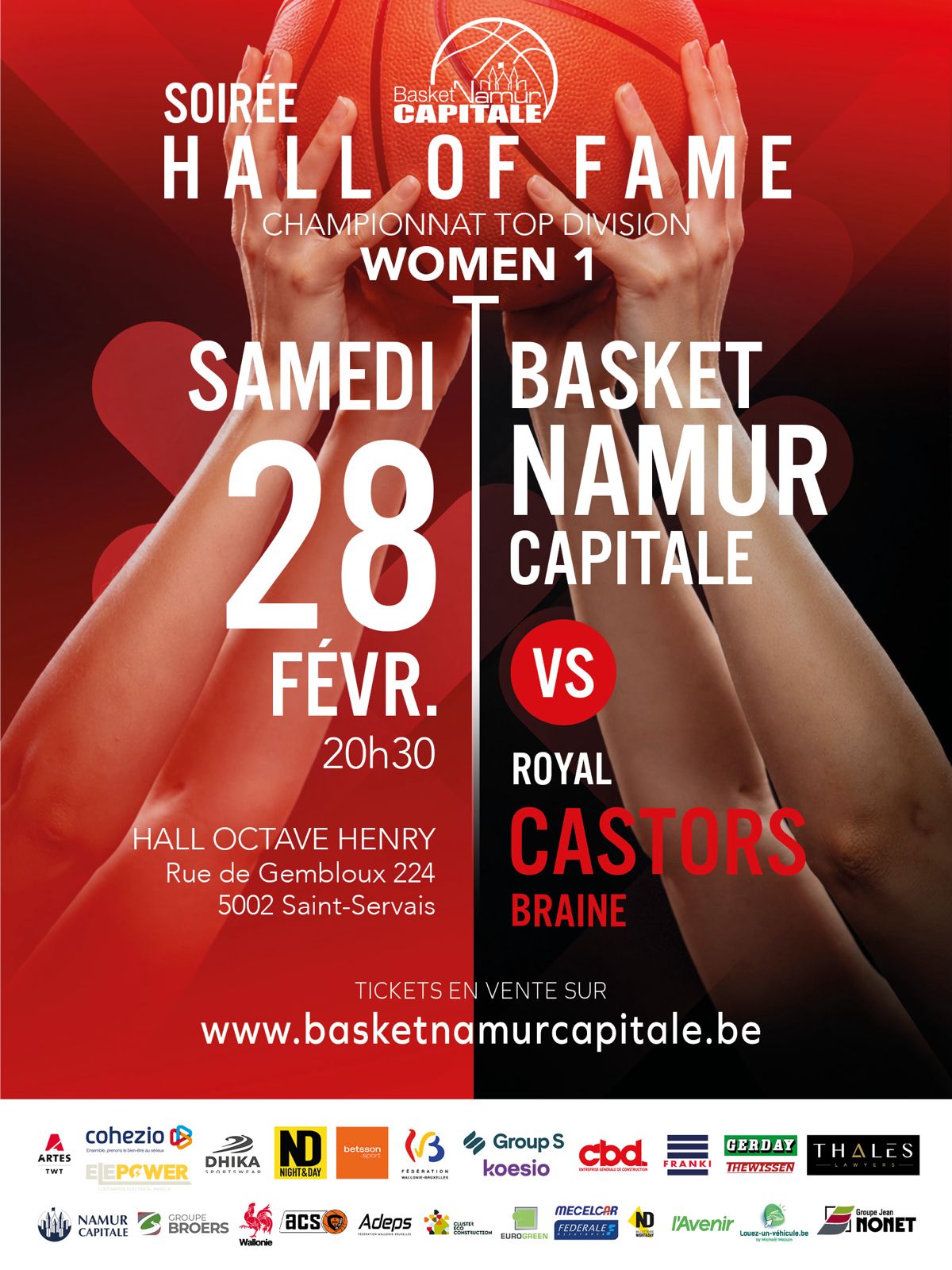 28Fév TDW1 : NAMUR CAPITALE – CASTORS BRAINE – Soirée « HALL OF FAME » 24 février 2026Evènements , News MATCH TDW1 Soirée « Hall of Fame » mettant à l’honneur les anciennes gloires du club. NAMUR CAPITALE – CASTORS BRAINE Samedi 28 février 20h30 TICKETS : ICI Le samedi 28/02 à 20:30