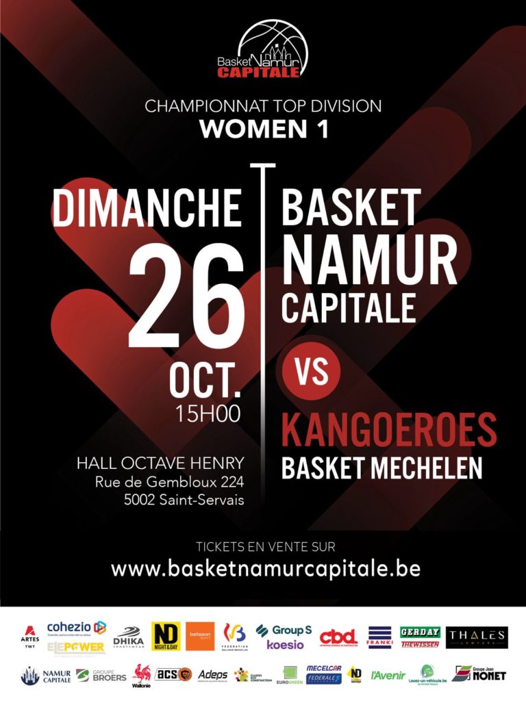 Le dimanche 26 octobre à 15h00, le BASKET NAMUR CAPITALE reçoit KANGOEROES BASKET MECHELEN au Hall Octave Henry.